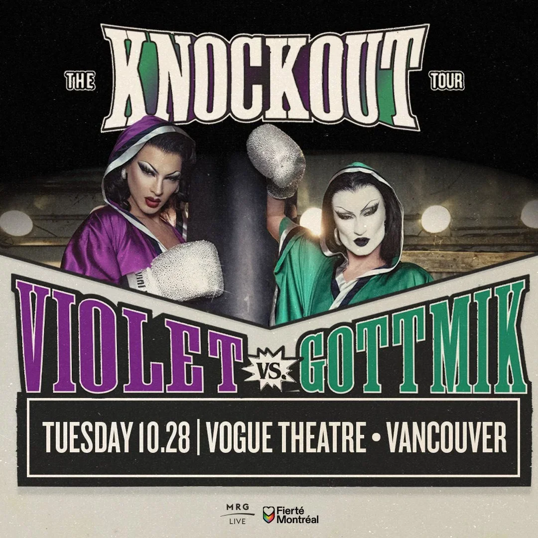 International drag superstars Violet Chachki and Gottmik come together for their first ever headline theater tour: KNOCKOUT. These queens have turned the fashion, drag, music, burlesque, and Pop culture worlds upside down and now they're putting it all in a boxing ring on a large stage and bringing it to you!