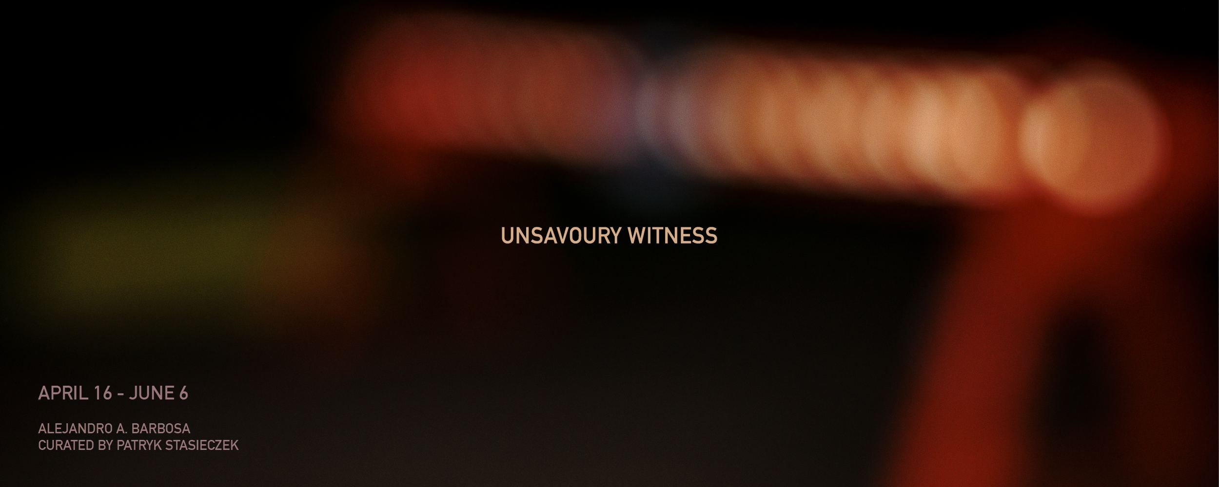 Alejandro A. Barbosa combines photography and excerpt with placemaking to conceptualise pause as an agency of justice. By working from official documents and media archives surrounding a pivotal case in the history of homophobic violence in Canada, they complicate the certainties of queer pleasure and integrate the inconsistencies of justice when prejudice, silence, and risk intersect desire. Within the safety of SUM gallery, the exhibition is crafted as a diorama where artist and viewer intersect the public figure of the witness toward a queer ethics of memorialisation. Unsavoury Witness is Alejandro A. Barbosa’s debut solo presentation in Canada, their first with SUM gallery, and is curated by long-time mentor Patryk Stasieczek.