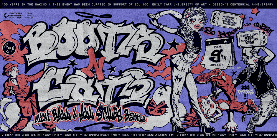 Merging performance, sound/music, and celebration to bridge the vibrant local communities of Ballroom and Hip Hop/Street Dance, this evening brings these forms into dialogue, highlighting their shared spirit of resilience, artistry and community, calling in future, present and past Emily Carr alumni alongside the wider community. The event expands what performance can be within the contemporary art context, positioning Ballroom and Street Dance as not only cultural practices but as vital, living art forms that challenge and reimagine how performance enters and transforms institutional spaces.
