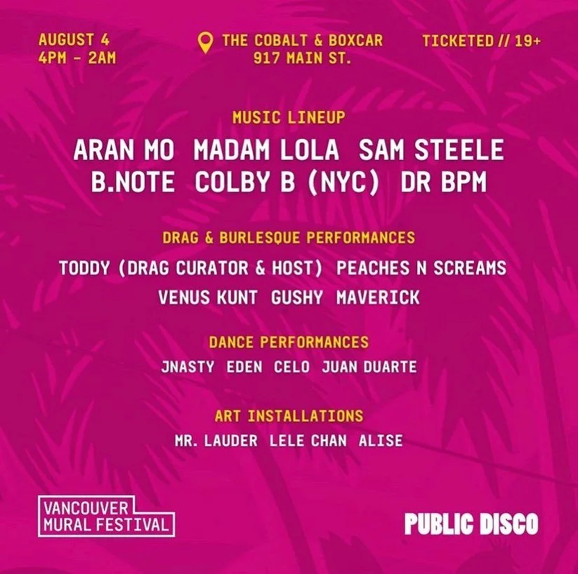 Kick off pride weekend in Vancouver with an outdoor disco followed by drag, burlesque and a queer rave into the night!