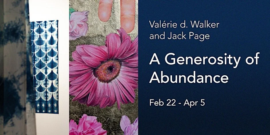 Join us for the opening reception of A Generosity of Abundance, featuring artwork from queer visual artists Valérie d. Walker and Jack Page.