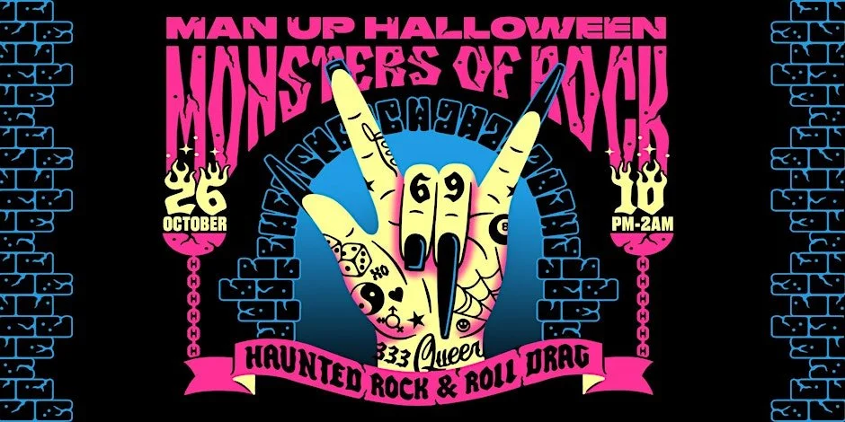 MAN UP HALLOWEEN IS THE FREAKY DRAG HELL OF YOUR WILDEST NIGHTMARES!!! We’re cranking up the amps and summoning the spirits of classic rock with a killer lineup of kings, things & queens!