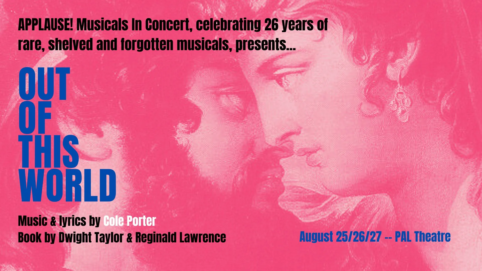 APPLAUSE! Musicals in Concert returns, celebrating their 26th year, with another rare, shelved and forgotten musical - OUT OF THIS WORLD a rare Cole Porter gem that opened on Broadway in 1950, shortly after the incredibly successful Kiss Me Kate (1948). A concert presentation of this musical will run at the PAL Theatre in Coal Harbour, August 25/26/27.