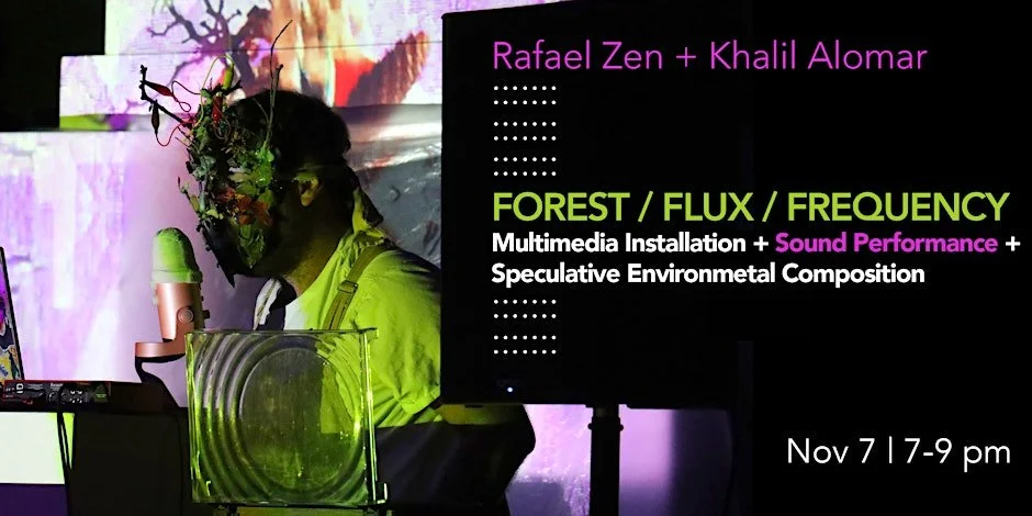 SUM gallery (#425-268 Keefer St.), Canada’s premiere Queer-mandated art gallery, presents its first exhibition of the fall, FOREST / FLUX / FREQUENCY by Rafael Zen & Khalil Alomar: a Multimedia Installation + Sound Performance + Speculative Environmental Composition. FOREST / FLUX / FREQUENCY opens with a public reception on Thursday, November 7, from 7 - 9pm, and runs until November 16.