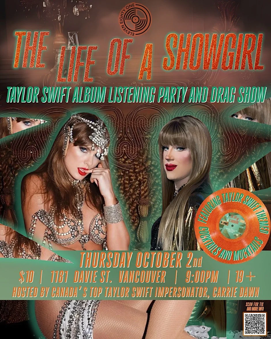 Join us for a fabulous night celebrating Taylor Swift's new album release with a dazzling Drag show inspired by The Life of a Showgirl! Oct 2.