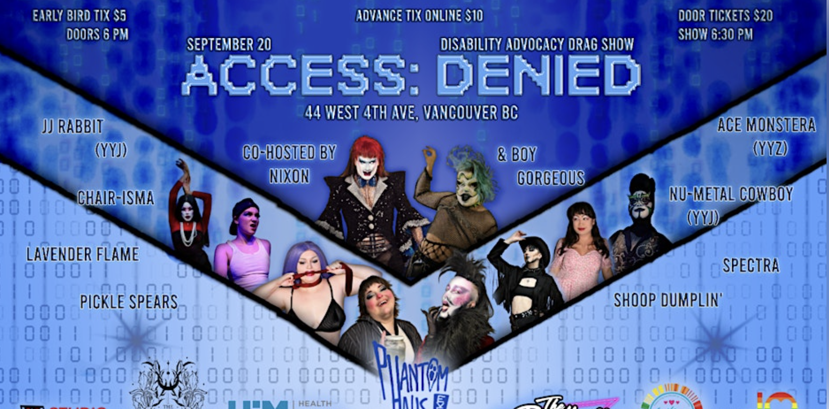 A drag show featuring disabled drag artists built by Vancouver's disabled Demon King, Nixon. Featuring several many accessibility upgrades. Sept 20.