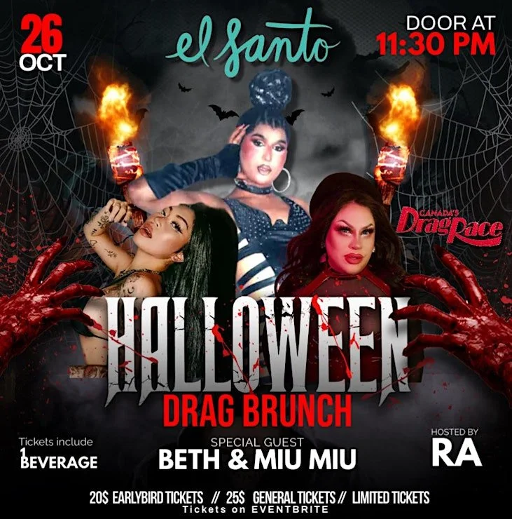 Halloween Drag Brunch at El Santo! Hosted by RA with Beth & Miu Miu—spooky, sassy, and absolutely unmissable! Oct 26.