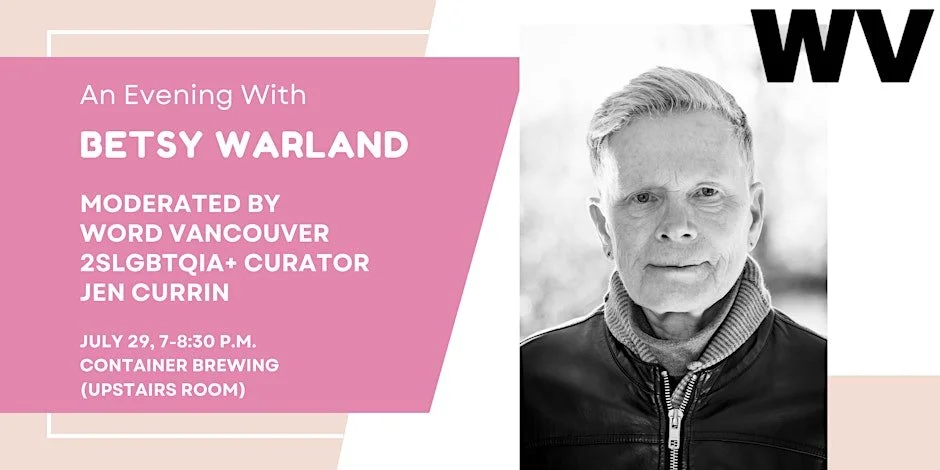 Join queer writer Betsy Warland for an intimate evening of reading & discussion, moderated by Word Vancouver LGBTQ2S+ curator Jen Currin.